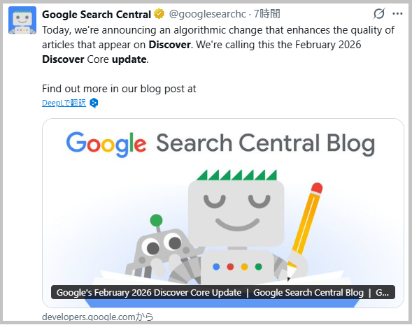 本記事では、2026年2月6日に発表されたGoogle Discoverのコアアップデートについて、速報でお伝えします。